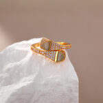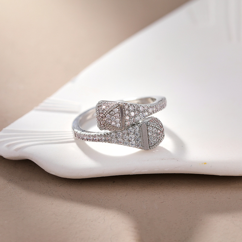 These two rings are presented in silver and gold respectively, with unique and modern designs. The main body of the ring is a decoration embedded with shiny zircon stones, resembling an elegant snake coiled between the fingers. This design not only enhances the three-dimensional feel of the ring, but also gives the accessory a lively and dynamic feeling.
